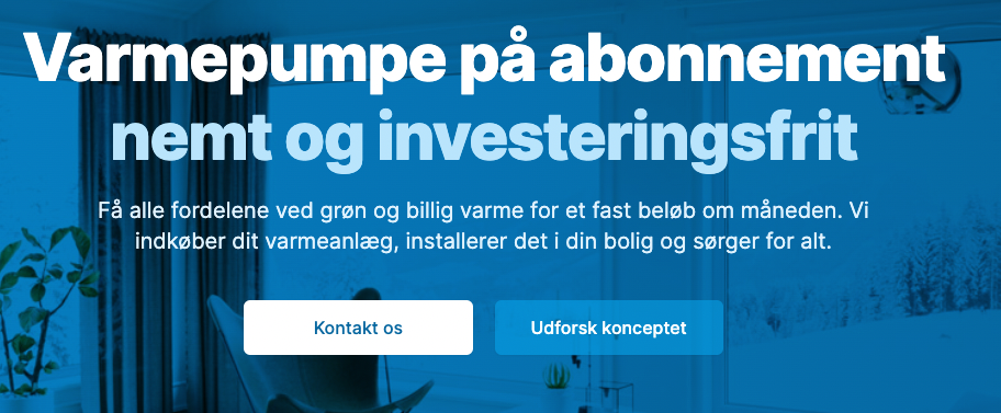Heat pump systems on subscription. It is easy and investment-free. You will get all the benefits of green and cheap heating for a fixed amount every month. Varmeo will handle everything in the process, including servicing afterwards.